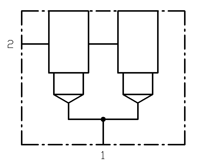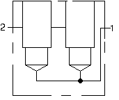 Rörmonterat ventilblock för backventiler, flödesventiler, elventiler och riktningsventiler, Dubbla kaviteter, 2 portar, 90°-block, gemensam port 2.